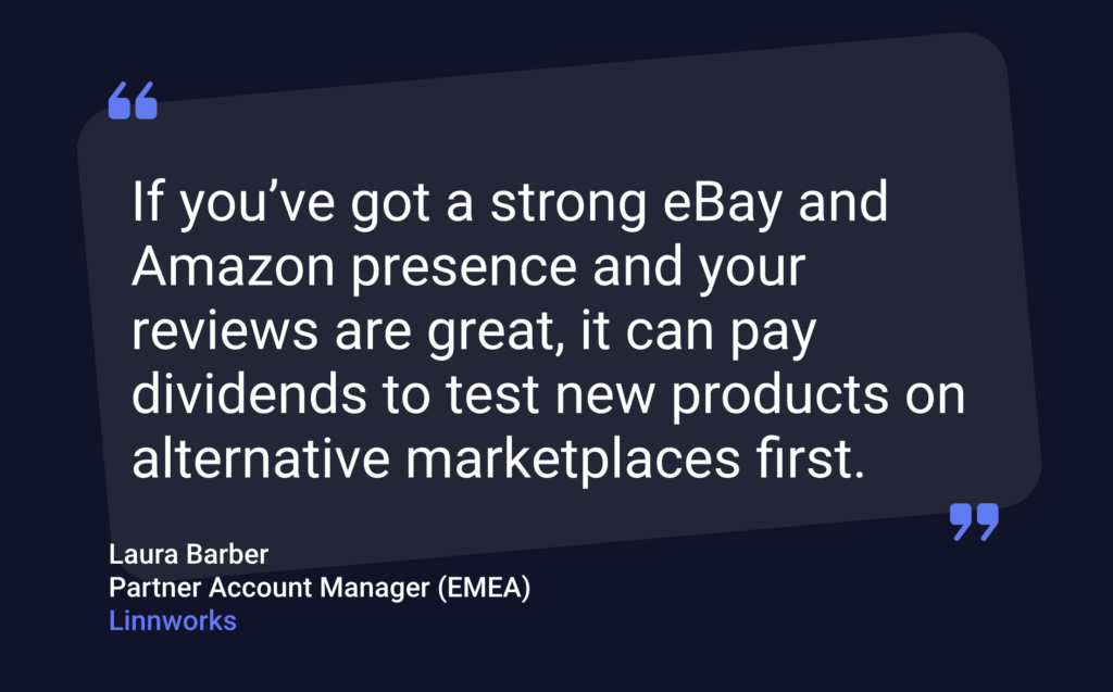 “If you’ve got a strong eBay and Amazon presence and your reviews are great, it can pay dividends to test new products on alternative marketplaces first,” says Barber. “If that product doesn’t match your or your customers’ expectations, it won’t tarnish your brand’s reputation on more critical channels.”