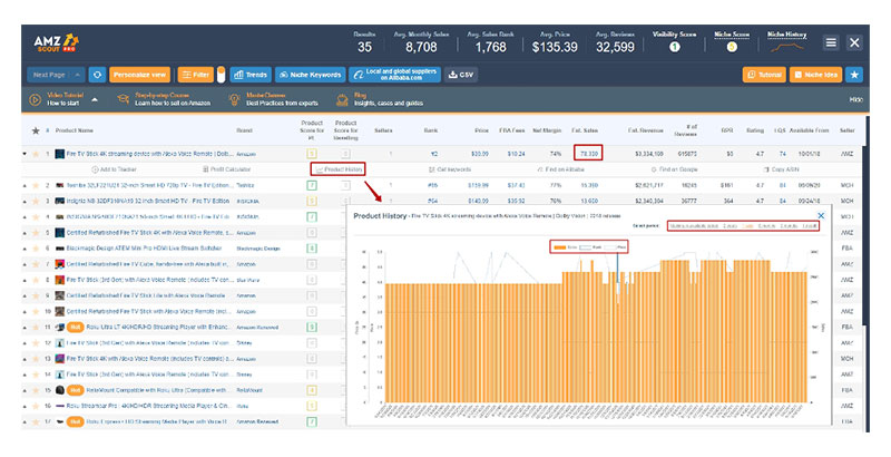 Plus, these tools give you access to a wide range of data, such as average monthly sales, profit margins, average review totals, competition levels, and sales history. This allows you to make informed decisions so you can choose more profitable products for your business.