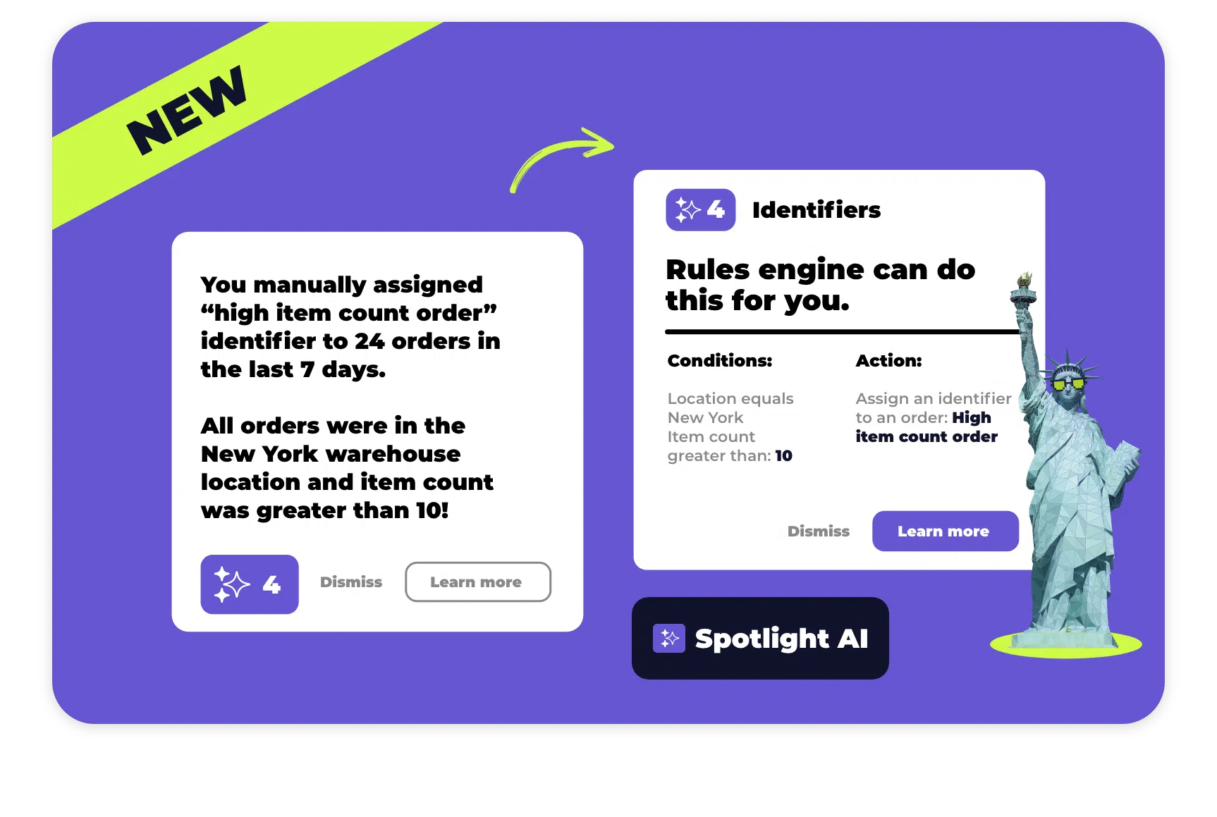 Set logic-based rules to automate nearly every aspect of your operations, even the complicated parts. Eliminate repetitive manual tasks with Spotlight AI and automatically route every order into the most efficient workflow.