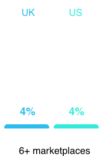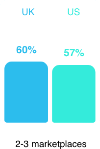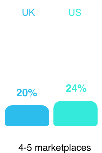 Or that most firms (74% in the UK and 70% in the US) sell their products on one to three marketplaces such as eBay, Amazon, and Etsy, with about a quarter (UK 24% and US 28%) expanding their reach by selling through four or more marketplaces?